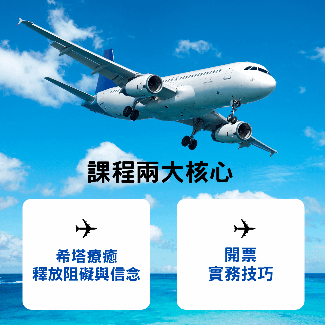 這堂工作坊整合了(實務面)機票開票概念和(靈性層面)希塔療癒信念心法的精髓,跟你分享兩大核心: