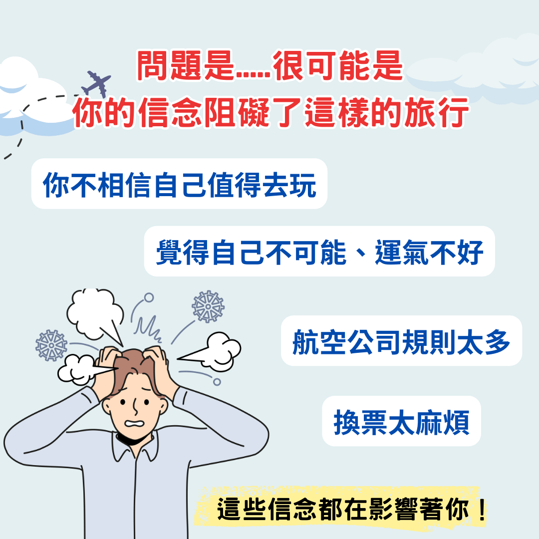 (1)開票實務技巧 + (2)正確信念 = 終生受用出發旅遊的機票!