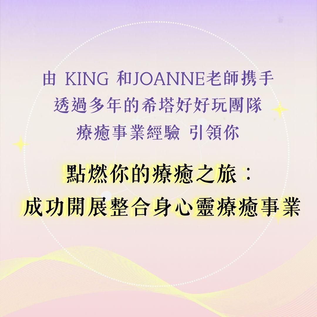 藉由這堂課程中的扎實內容和各種冥想,KING和JOANNE老師將引導你清理不同層面來自身心靈和潛意識中儲藏著對靈性和療癒的恐懼、焦慮和負面想法。讓你開始思考自己更多的可能性、瞭解並善用自己的天賦、優勢,打下療癒師需具備的良好基礎,進而開啟療癒之路!