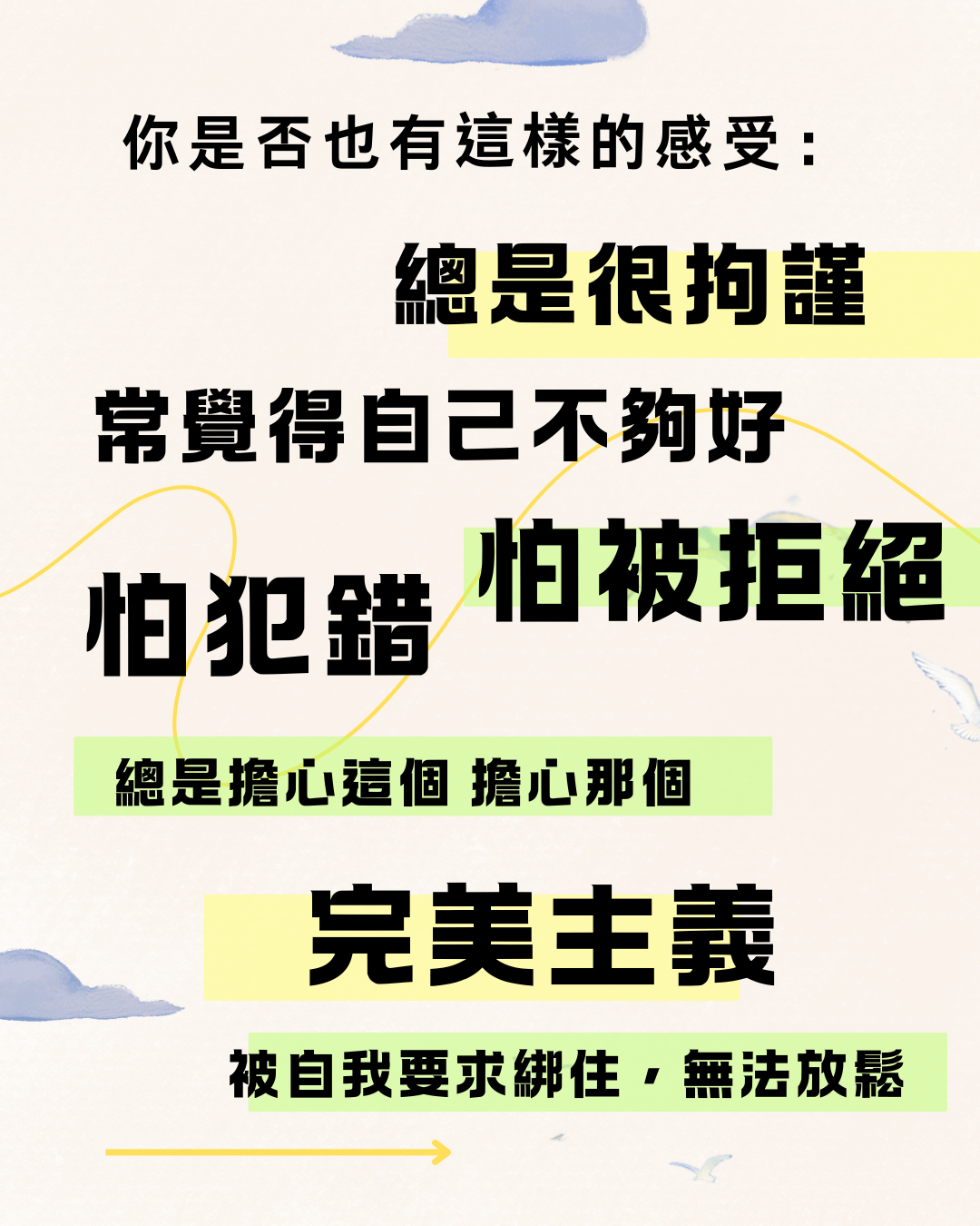 你沒看錯!以前的華璇老師也像你一樣,總覺得自己不夠好,沒自信、懷疑自己、拘謹壓抑,常被「完美主義」困住,對自己要求極高,連一刻都不敢放鬆。