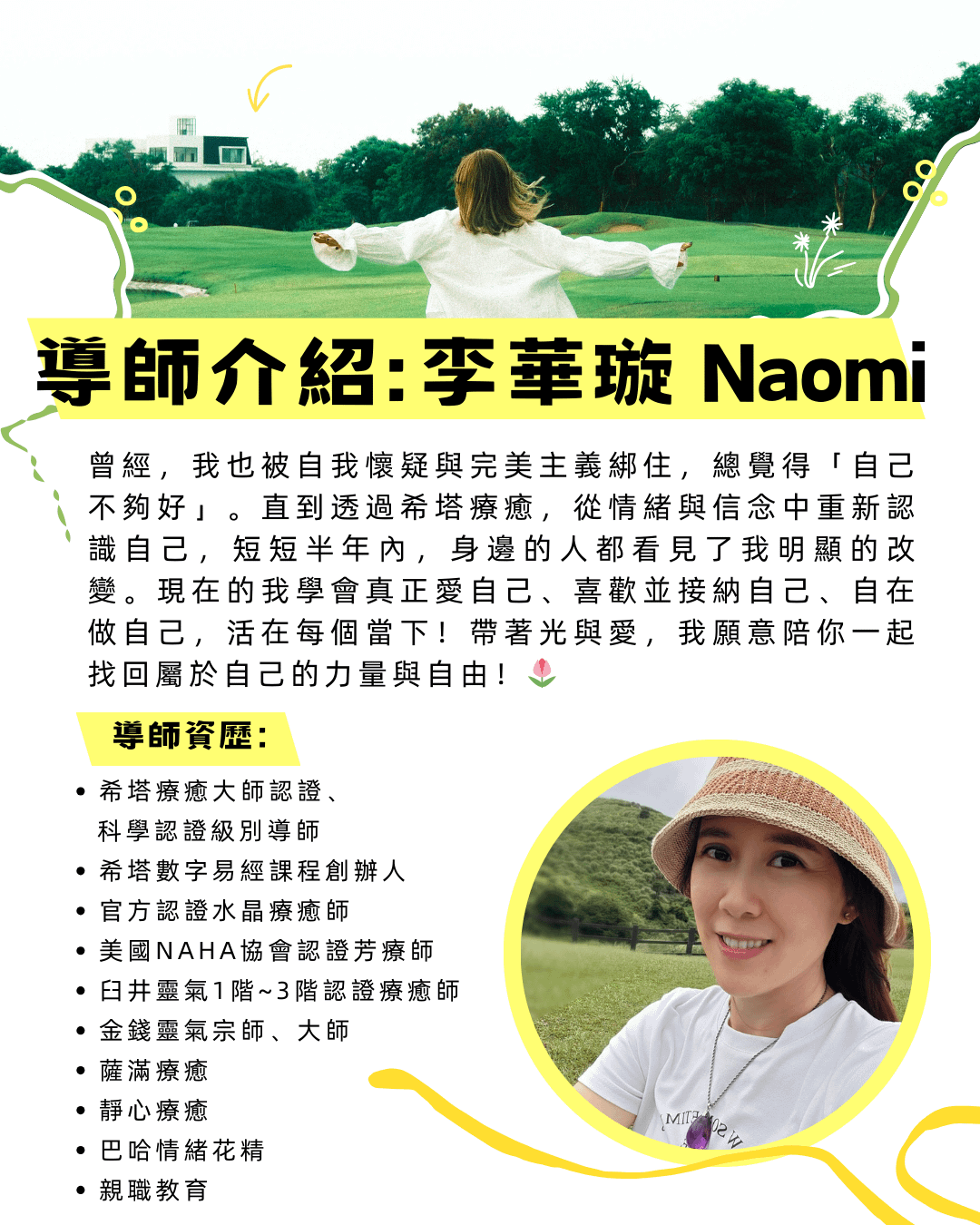 她如何透過希塔療癒課程幫助自己,從「沒自信、很拘謹」蛻變成現在「自在活出自己」的過程。