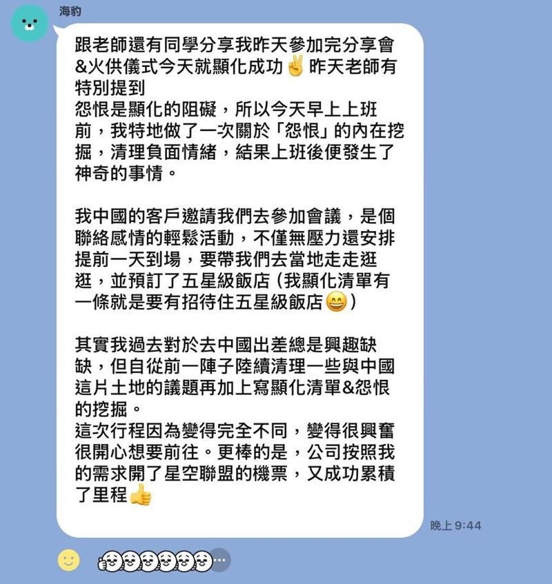 每一年都有同學完成了他們的目標清單,去年參加顯化工作坊火供儀式的同學成果回饋 💰💰💰