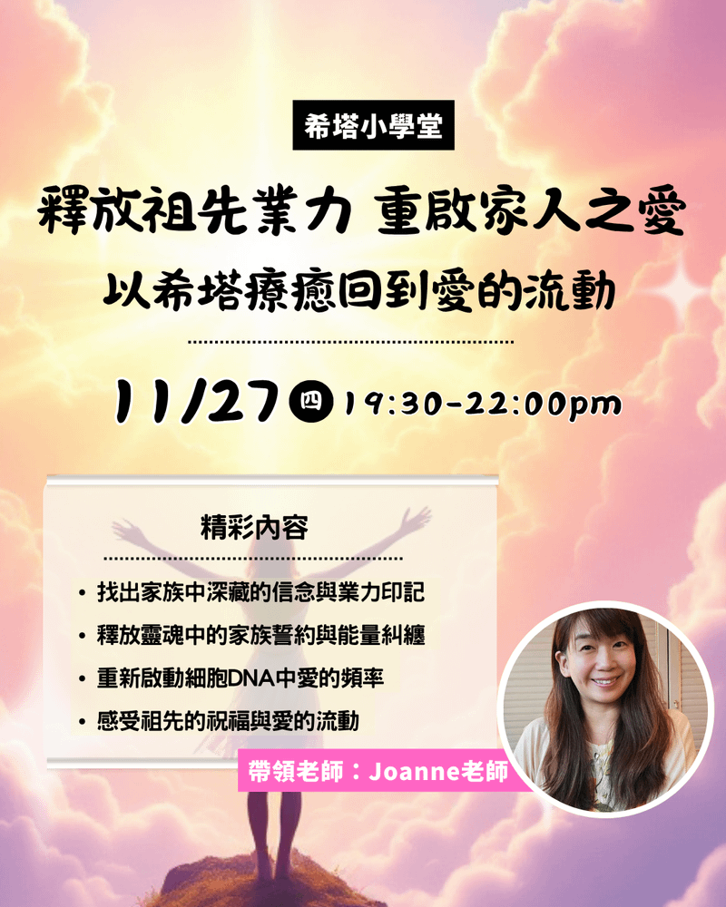 (11月直播)【希塔小學堂】釋放祖先業力・重啟家人之愛 —— 以希塔療癒回到愛的流動 🌸