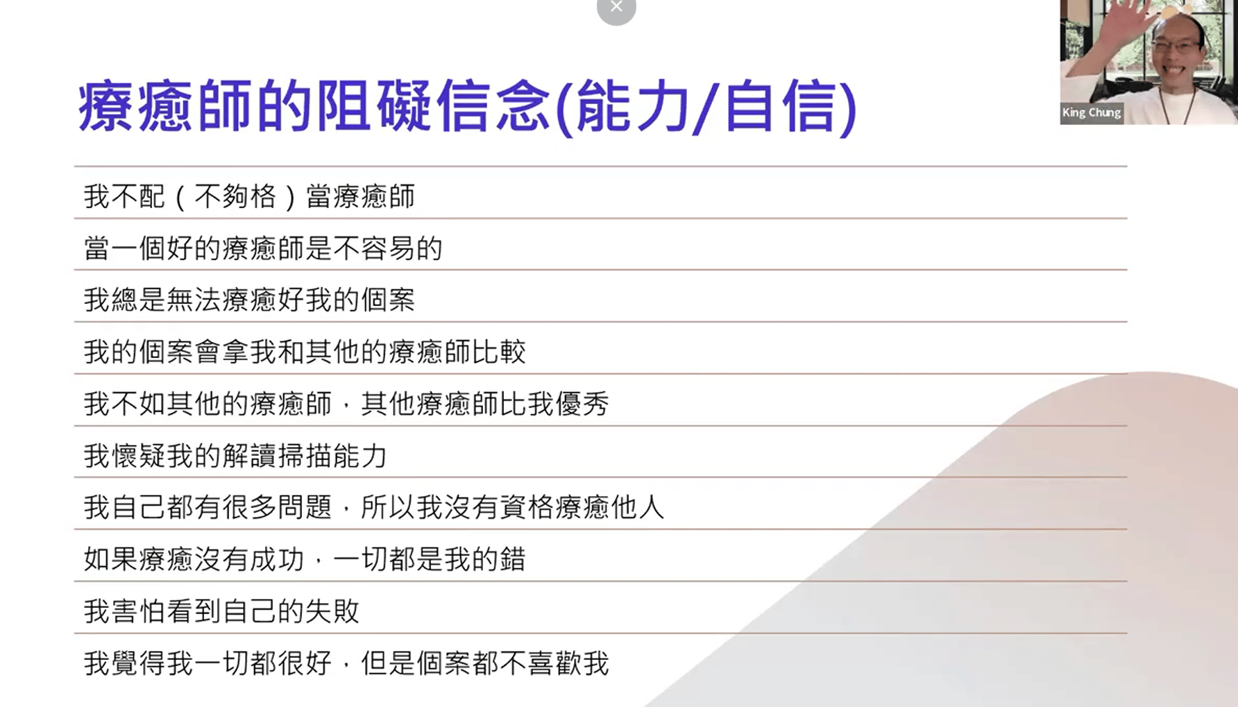 其中我們想特別提到很多同學都說很有感的「療癒師的阻礙信念」